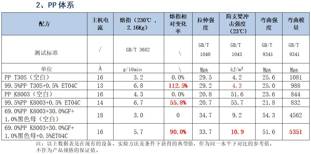 3、改善加工流动性,有效降低熔体压力和主机电流,有效提高产能;