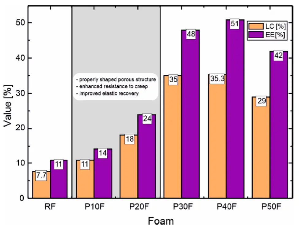 尽管PAMAM树枝状大分子作为药物载体已被广泛研究,但将PAMAM G3整合到用于药物固定的多孔泡沫结构中是一种新的解决方案。获取此类泡沫材料的第一种方法在作者的专利PL247079B1中有所描述,其中使用了50wt%的PAMAM G3树枝状大分子。PAMAM G3的平均直径约为3.6 nm,足以实现对DOX等药物分子的高效包埋,同时保持与多元醇组分的良好互溶性。关于PAMAM–DOX复合物的抗癌活性研究表明,通过静电作用或包埋机制可提高细胞摄取效率,并增强对癌细胞的细胞毒性。但其生物医学应用受到树枝状大分子相关细胞毒性、药物快速释放以及对药物扩散控制不足的限制。前期的研究大多数主要集中在游离的PAMAM-阿霉素(DOX)复合物上,而非通过树枝状大分子修饰的固态递送系统。在对人类永生化角质形成细胞(HaCaTs)和人类鳞状细胞癌SCC-15细胞系进行的体外生物学研究表明,含有50%PAMAM G3的聚氨酯可释放抗癌药物DOX,但所研究的体系细胞毒性过高。此外,前期的研究主要集中在树枝状大分子负载量高(例如50 wt%)的系统上,而未系统评估改变PAMAM分数对其结构、粘弹性特性和药物释放能力的影响。由于PAMAM树枝状大分子是所有成分中最昂贵的一种,因此,在确保结构稳定性和治疗功能性的基础上,采用最小有效用量至关重要。